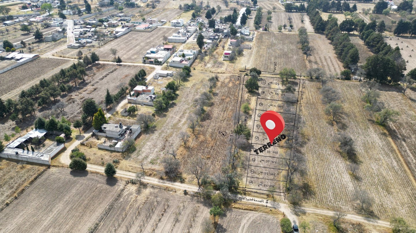 Ubicados junto a carretera rumbo a El Carmen Xalpatlahuaya, a solo 5 min del CECYTE 29 y la UTT. Lotes de 200 m² con posesión inmediata, listos para inversión.
